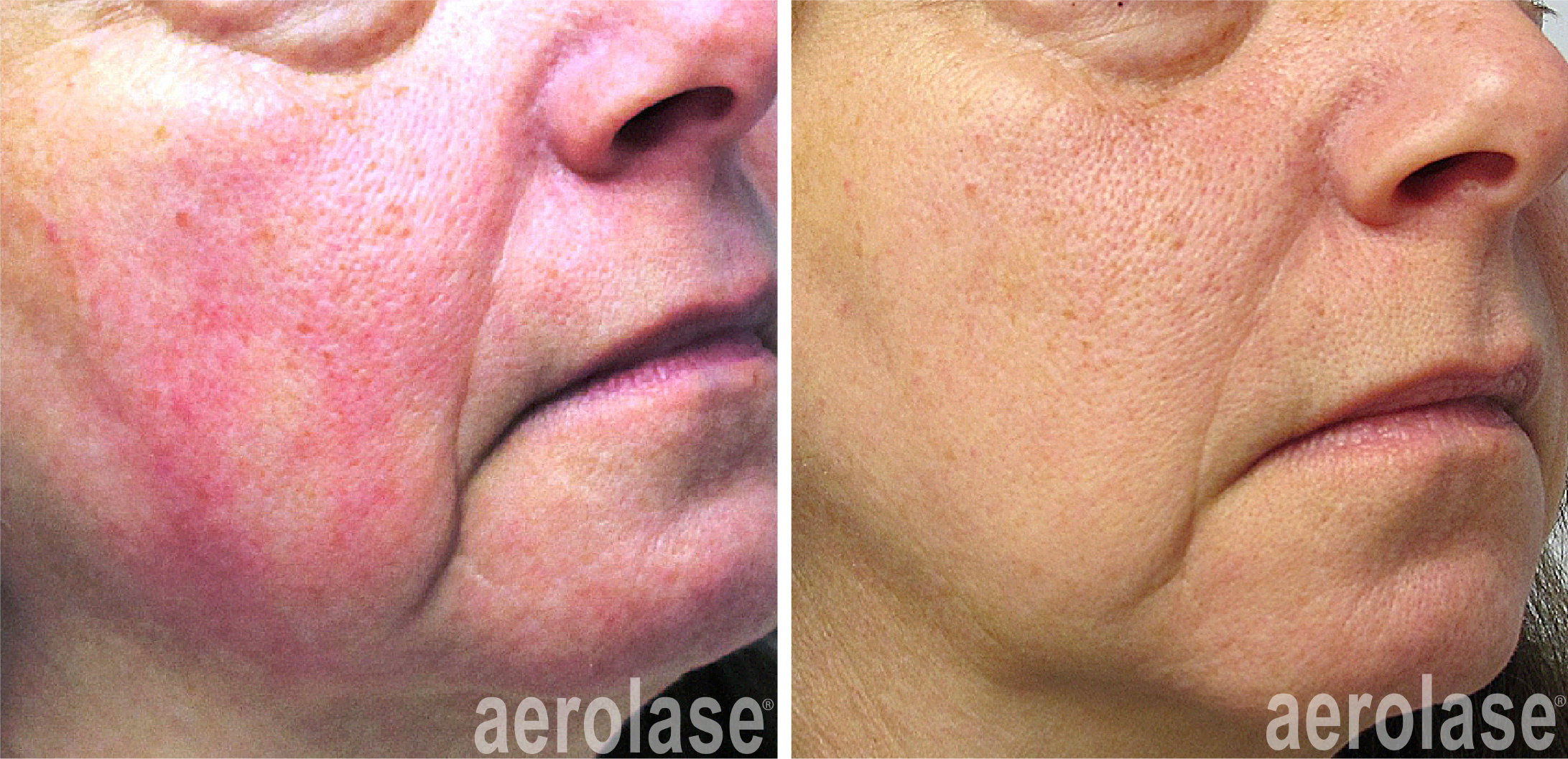 Aerolase safely targets visible redness, dilated blood vessels, and rosacea flare-ups.